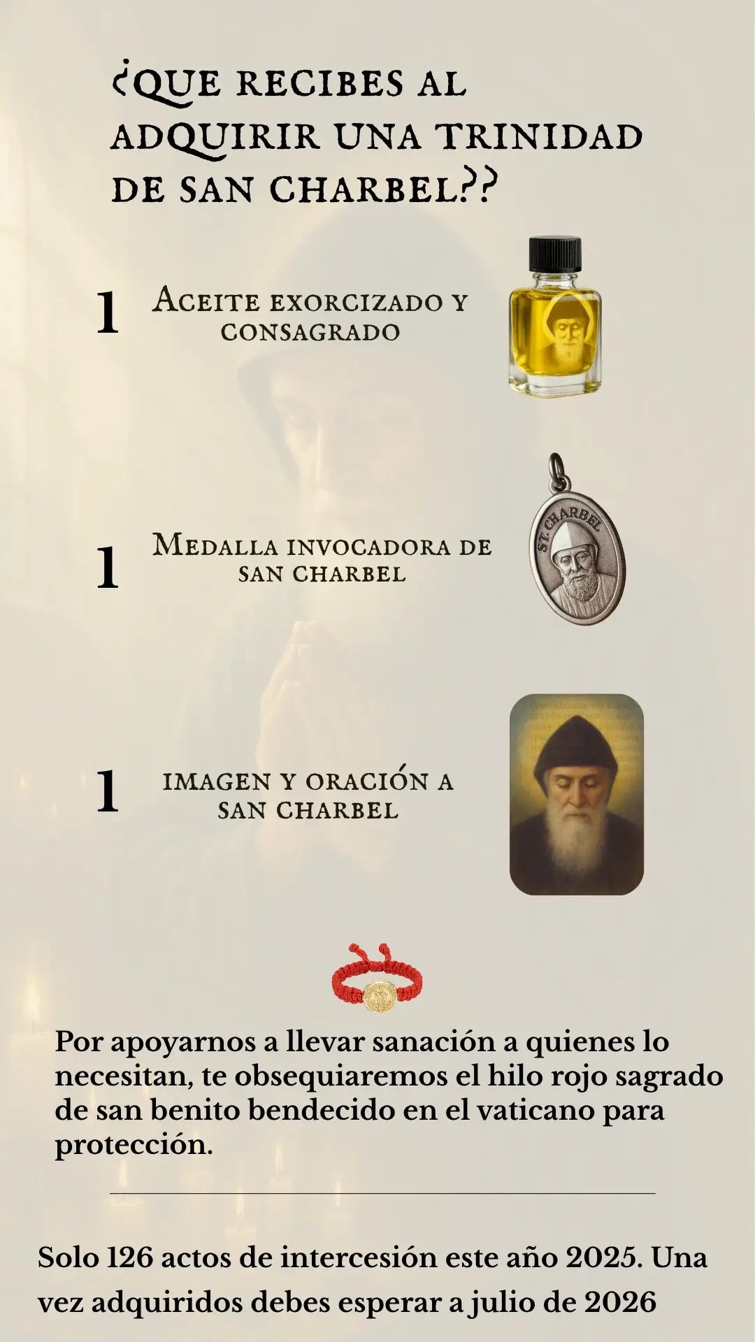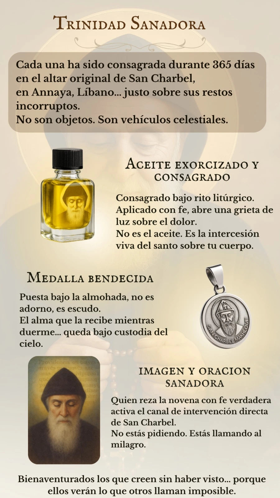Este aceite ha sido bendecido en el altar donde reposan los restos incorruptos de San Charbel. Cada gota ha sido testigo de oraciones, lágrimas, súplicas... y milagros.